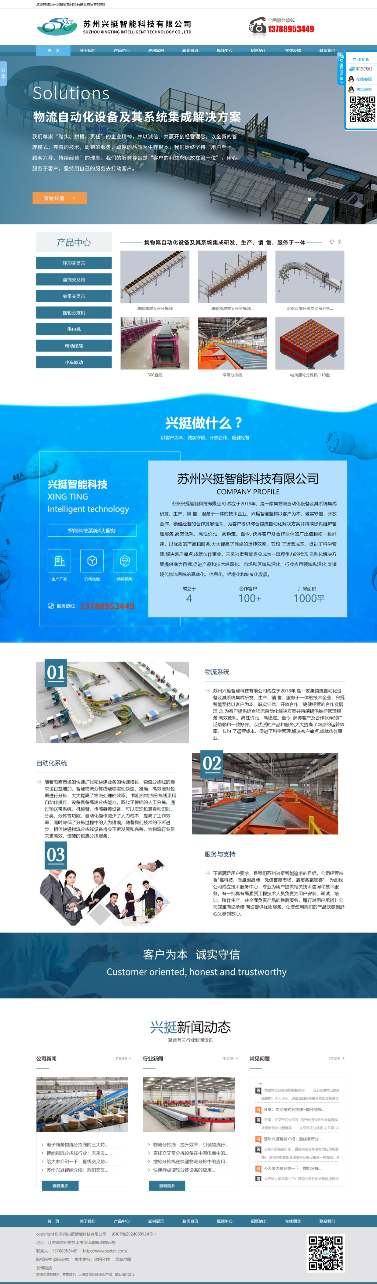 蘇州興挺智能(néng)科(kē)技(jì)有(yǒu)限公司成立于年(nián),是(shì)一(yī)家(jiā)集物(♠wù)流自(zì)動化(huà)設備及其系統集成研發、生(shēng)産、銷售、服務于一(yī)體(tǐ)的(de)技(jì)術(shù)企業(yè),未來(lái)興挺智能(n♥éng)将會(huì)成為(wèi)一(yī)流競争力的(de)物(wù)流自(zì)動化(huà)解決方案提供商為(wèi)目标,促進産品φ和(hé)技(jì)術(shù)縱深化(huà)、市(shì)場(chǎng)和(hé)區(qū)域縱深化(huà)、行(xíng)業(yè)應用(yòng)領域縱深化₹(huà),支撐現(xiàn)代物(wù)流系統的(de)高(gāo)效化(huà)、信息化(huà)、标準化(huà)和(hé)制(zhì")度化(huà)發展。